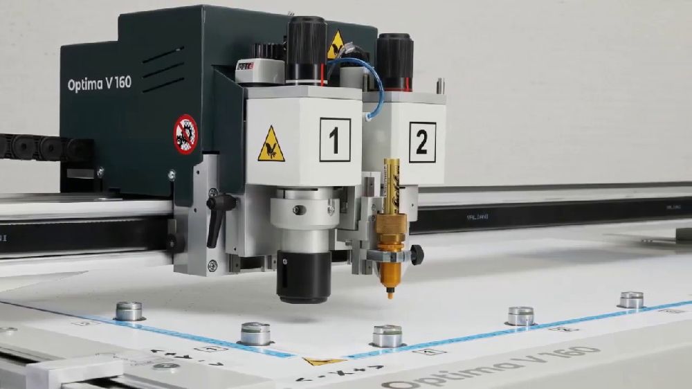 Το μοντέλο Optima V1612 που επιλέχθηκε, είναι ένα κόμπακτ σύστημα με σχήμα τραπεζιού 160 x 123cm, ιδανικό για μικρούς χώρους παραγωγής και για επεξεργασία κουτιών αλλά και σταντ. Είναι κατάλληλο για κοπή,χάραξη, πίκμανση & σχεδίαση, για υλικά πάχους έως 20mm – μάλιστα είναι ειδικά σχεδιασμένο για κοπή V-cut σε γκρι συμπαγές χαρτόνι (greyboard). Οι ανεξάρτητες κεφαλές μπορούν να ρυθμιστούν εύκολα για διαφορετικά πάχη υλικών με αλλαγή στον τύπο και μήκος του μαχαιριού που χρησιμοποιείται. Το μηχάνημα διαθέτει στάνταρ κάμερα για ανάγνωση σημαδιών κοπής. Το σύστημα της κάμερας, σε συνδυασμό με το προαιρετικό software OptiCrop, προσφέρει περιγραμματική κοπή ακριβείας σε προτυπωμένα υλικά.