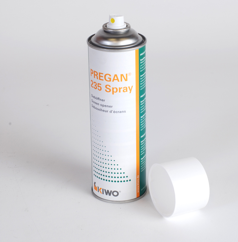 Το PREGAN 235 SPRAY διαλύει μελάνια διαλύτη, ακόμη και όταν έχουν στεγνώσει, μετά από διακοπές ή όταν η γάζα του τελάρου αρχίζει να φράζει. Λόγω της σύνθεσής του είναι ιδιαίτερα κατάλληλο για μεταξοτυπία, δηλαδή παρά τις εξαιρετικές καθαριστικές του ιδιότητες, το PREGAN 235 SPRAY έχει ελάχιστη επίδραση στις εμουλσιόν. Η εύκολη εφαρμογή του αποτρέπει δαπανηρές και χρονοβόρες διαδικασίες καθαρισμού.