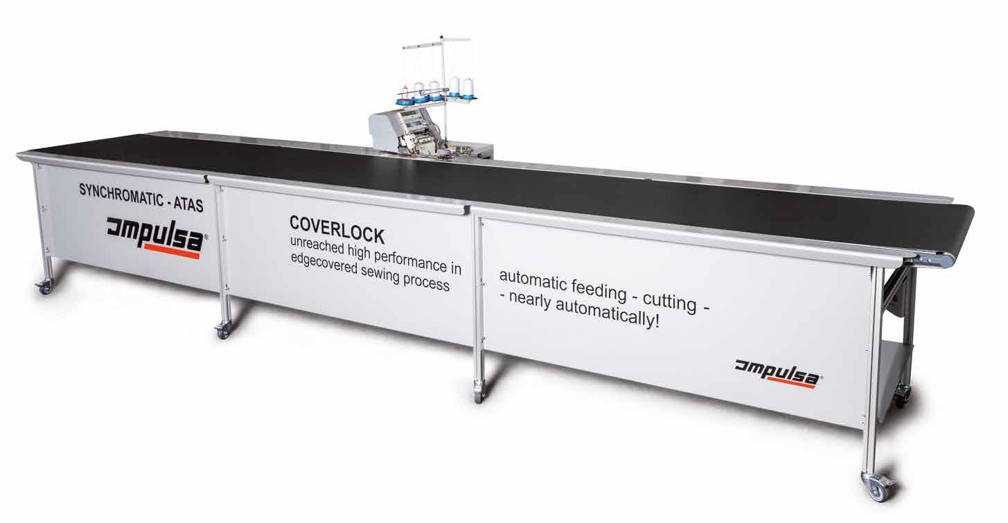 Το SYNCHROMATIC αποτελεί ένα προηγμένο σύστημα ραπτικής, σχεδιασμένο για μέγιστη παραγωγικότητα, απόλυτο συγχρονισμό και κορυφαία ποιότητα ραφής. Ο συγχρονισμένος ιμάντας μεταφοράς, σε συνδυασμό με σερβομηχανισμό υψηλής τεχνολογίας, λειτουργεί απόλυτα εναρμονισμένα με τη ραπτική μηχανή, εξασφαλίζοντας ομαλή ροή εργασίας σε όλες τις ταχύτητες ραψίματος.
