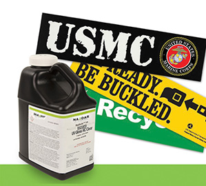 - Excellent adhesion on most self-supporting flexible vinyls and pressure sensitive vinyls including decal graphics applied over flat smooth surfaces (non-fleet applications).
